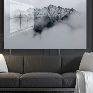 Bulutlu Dağlar Siyah Beyaz Cam Tablo, Duvar Dekor, Büyük Tablo, Cam Duvar Tablo, Kanvas Tablo